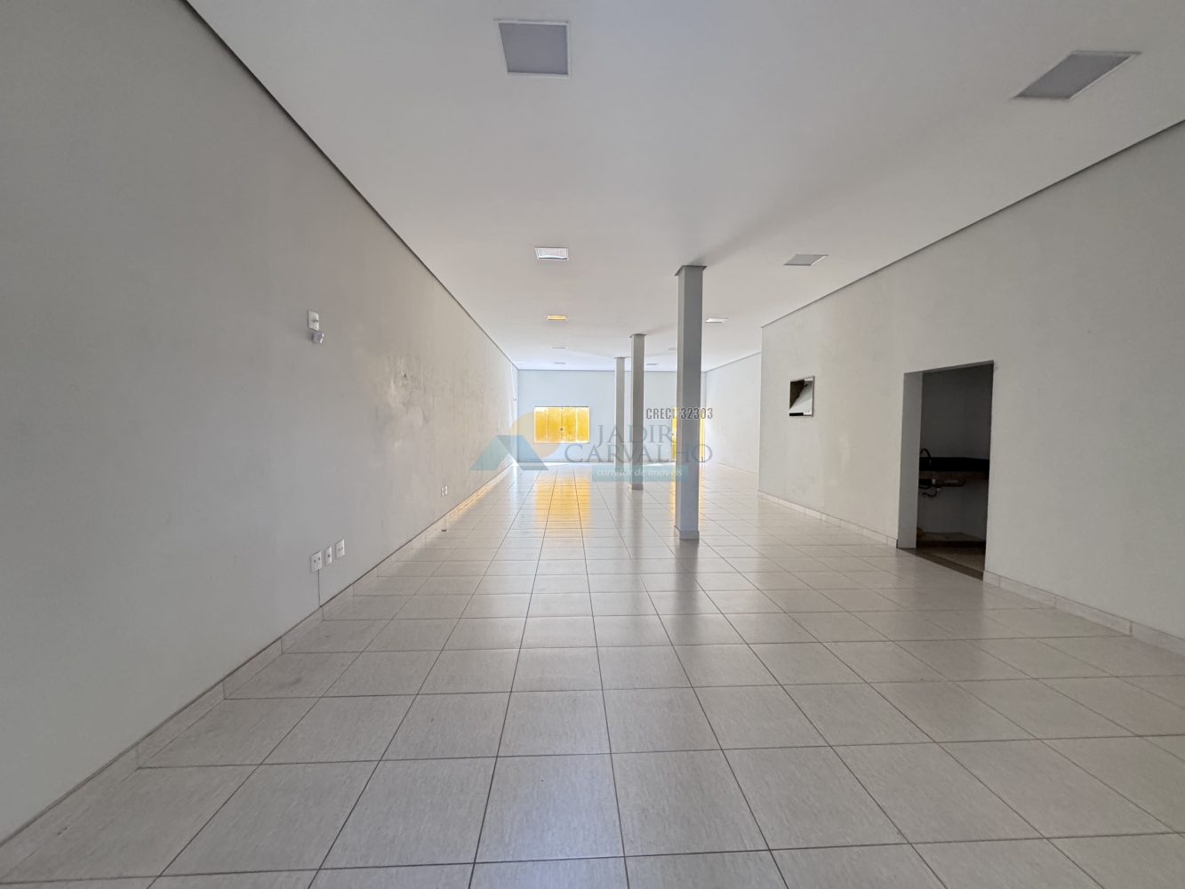 Hall da loja, 01 banheiro social, 01 cozinha, área de ventilação, vaga para um veículo.