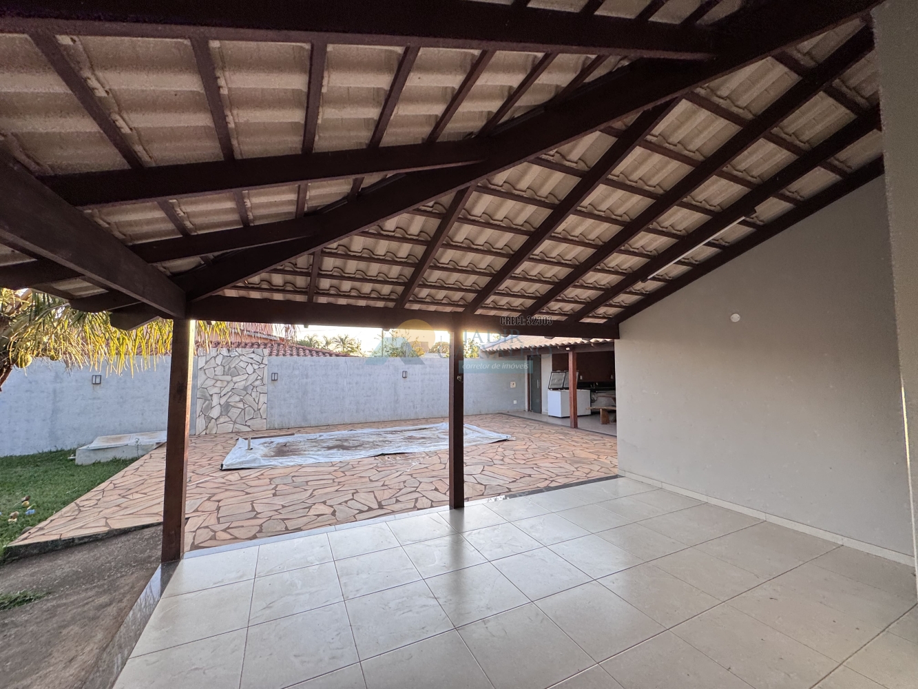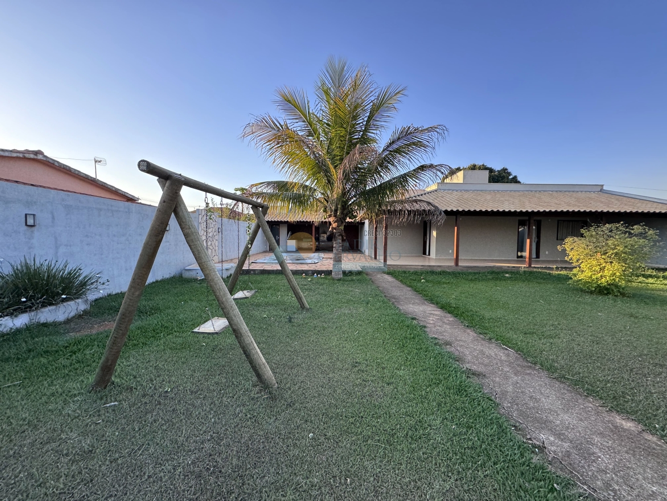 ÁREA EXTERNA: Varanda com área gourmet e fogão a lenha – Piscina – Lavanderia – 01 Banheiro Social – Área externa ampla, com parquinho. Possui cobertura embutida evitando, futuras instalações.