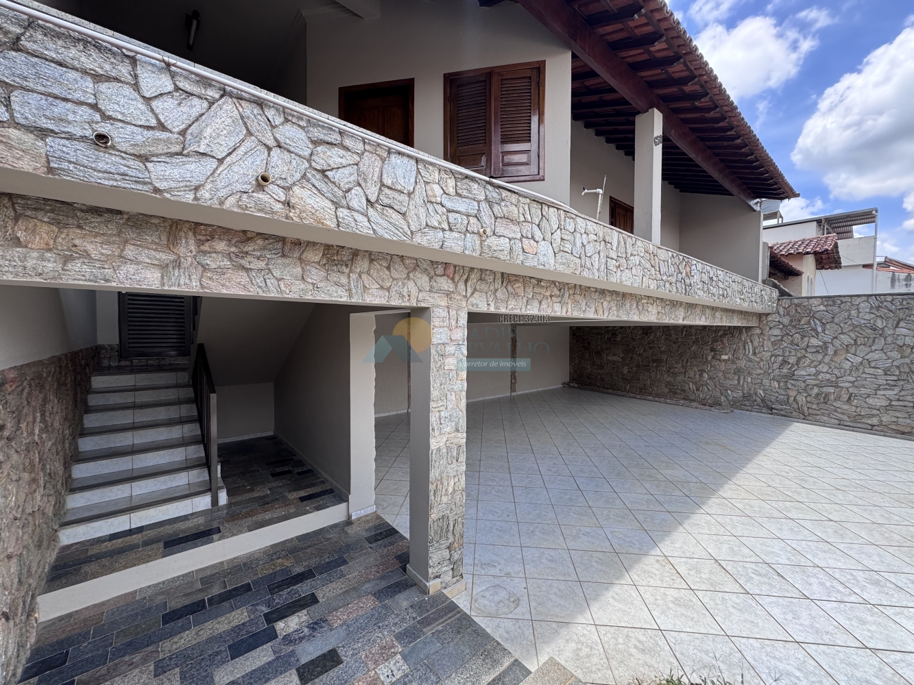 TÉRREO: Garagem para 04 Carros mais motos – Escada de acesso ao 1º pavimento.