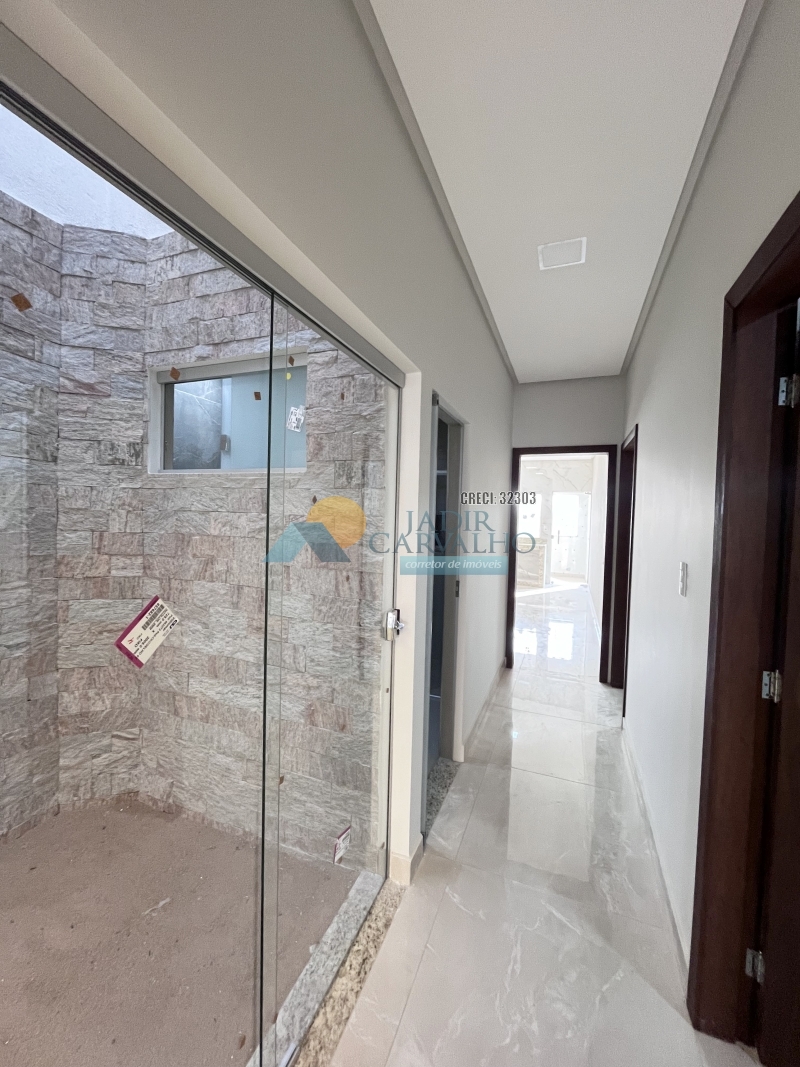 ÀREA PRINCIPAL: Garagem para 02 carros mais motos – 01 Sala – Corredor de acesso aos cômodos – 03 Quartos sendo um suíte e closet – 01 Banheiro social – 2 Áreas de Claridade – 01 Cozinha – Quintal – 01 Lavanderia – Escada de acesso ao terraço.