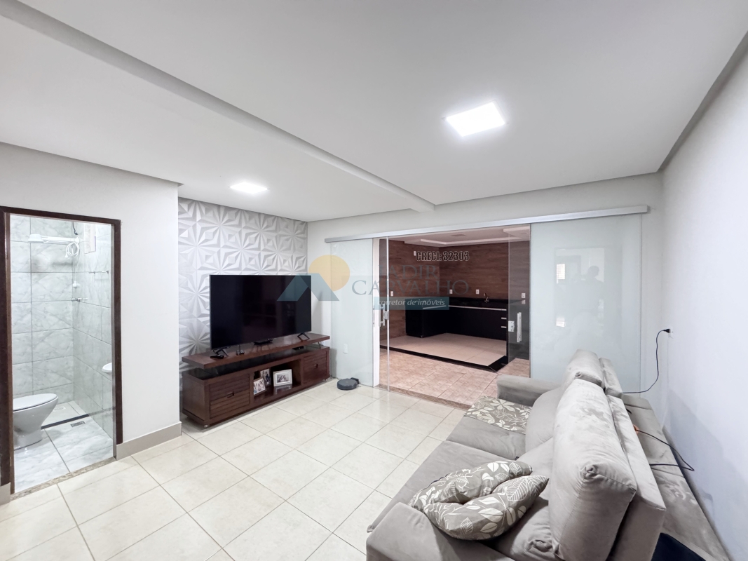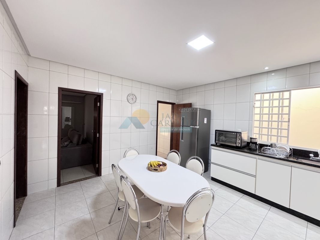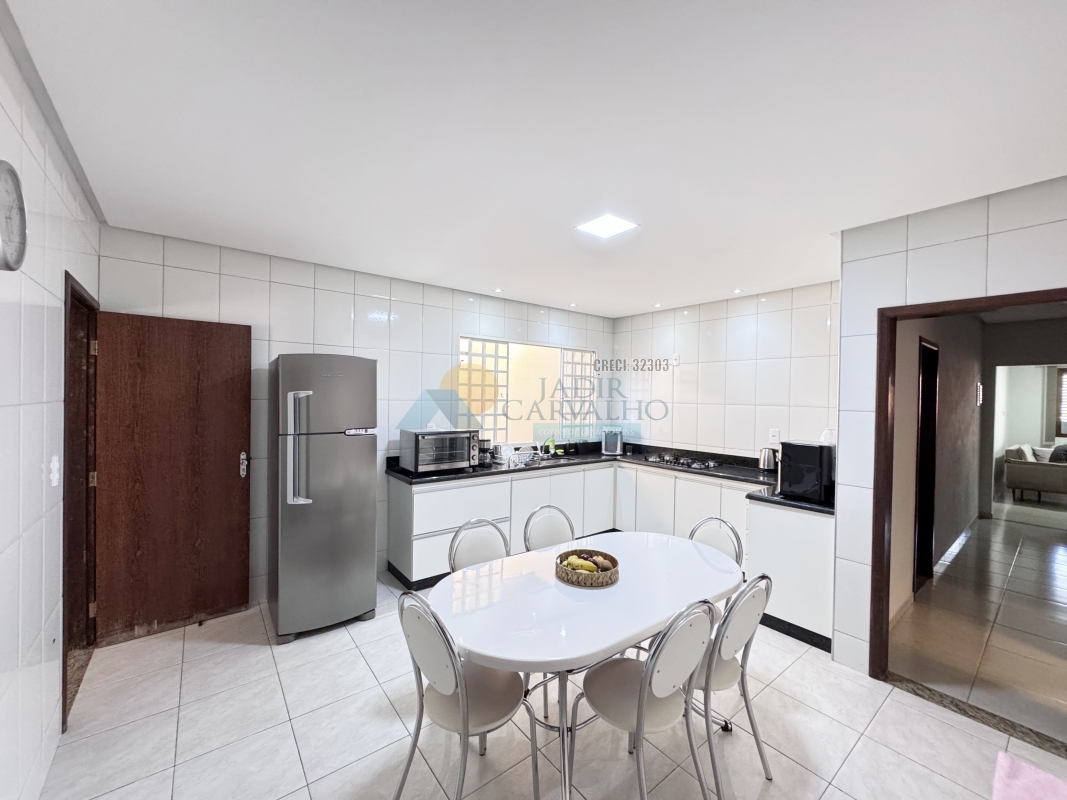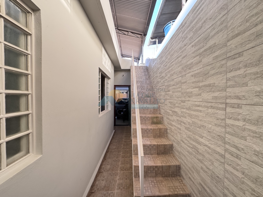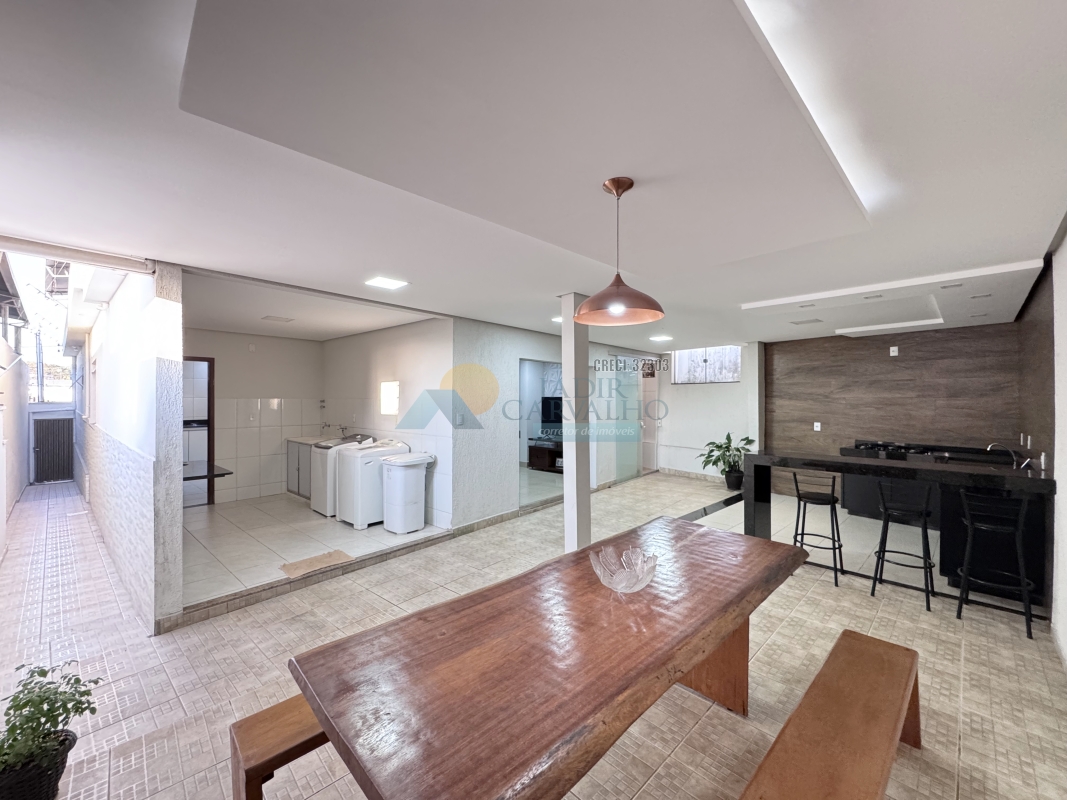 Garagem para 02 carros mais motos – 02 Salas – Corredor de acesso aos cômodos – 04 Quartos sendo uma suíte – Área de claridade – 02 Banheiros sociais – Cozinha – Quintal – Lavanderia – Área gourmet – Cobertura metálica alta.